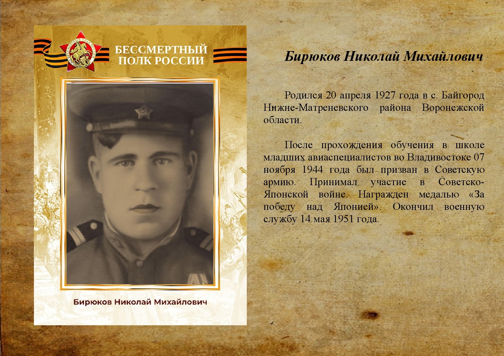 | #Победа80 «Бессмертный полк» Бирюков Николай Михайлович | версия для печати |