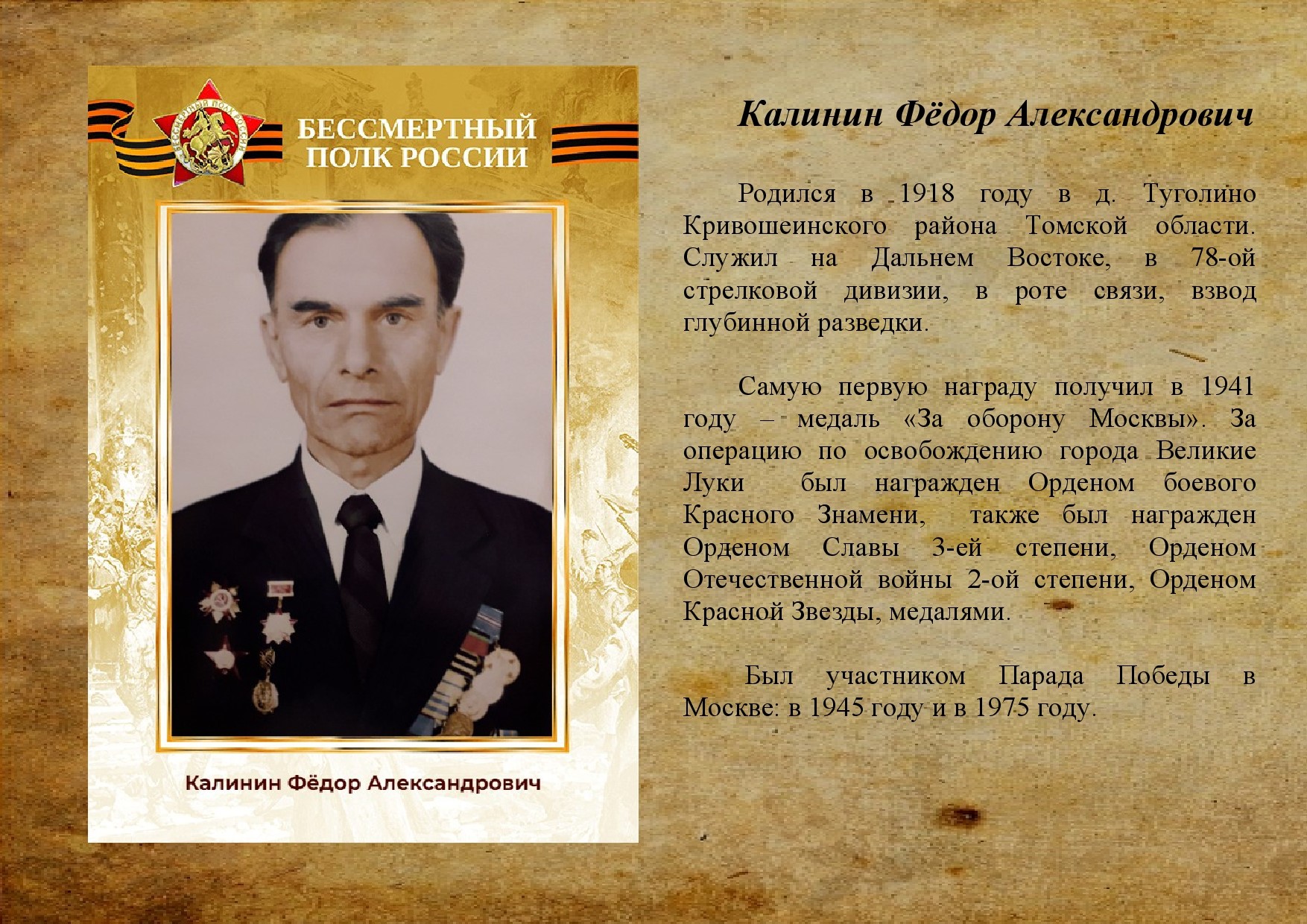| #Победа80 «Бессмертный полк» Калинин Фёдор Александрович | версия для печати |