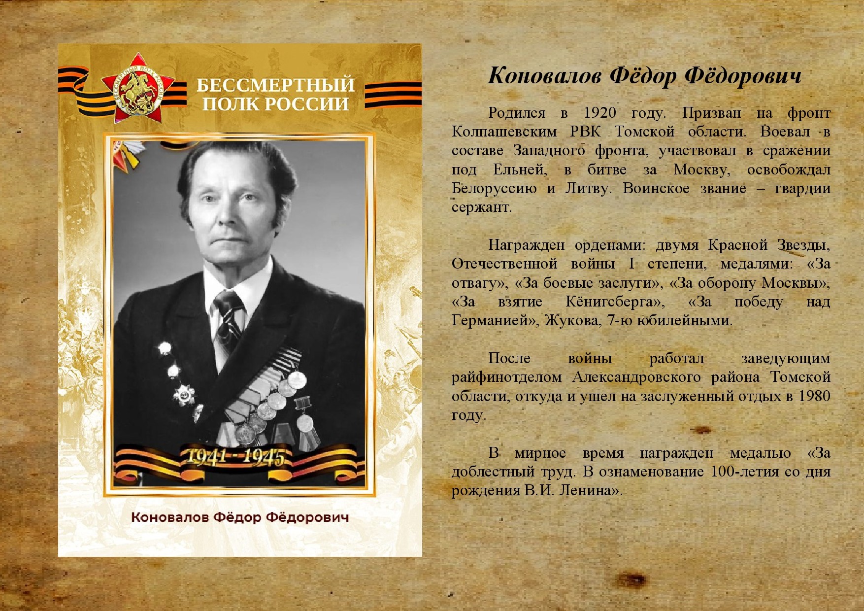 | #Победа80 «Бессмертный полк» Коновалов Фёдор Фёдорович | версия для печати |